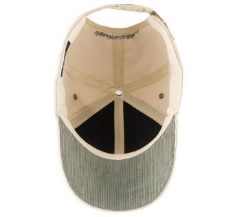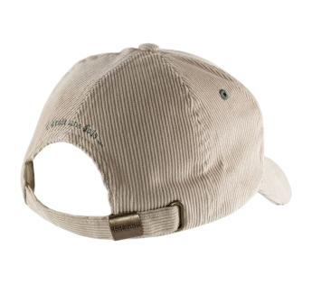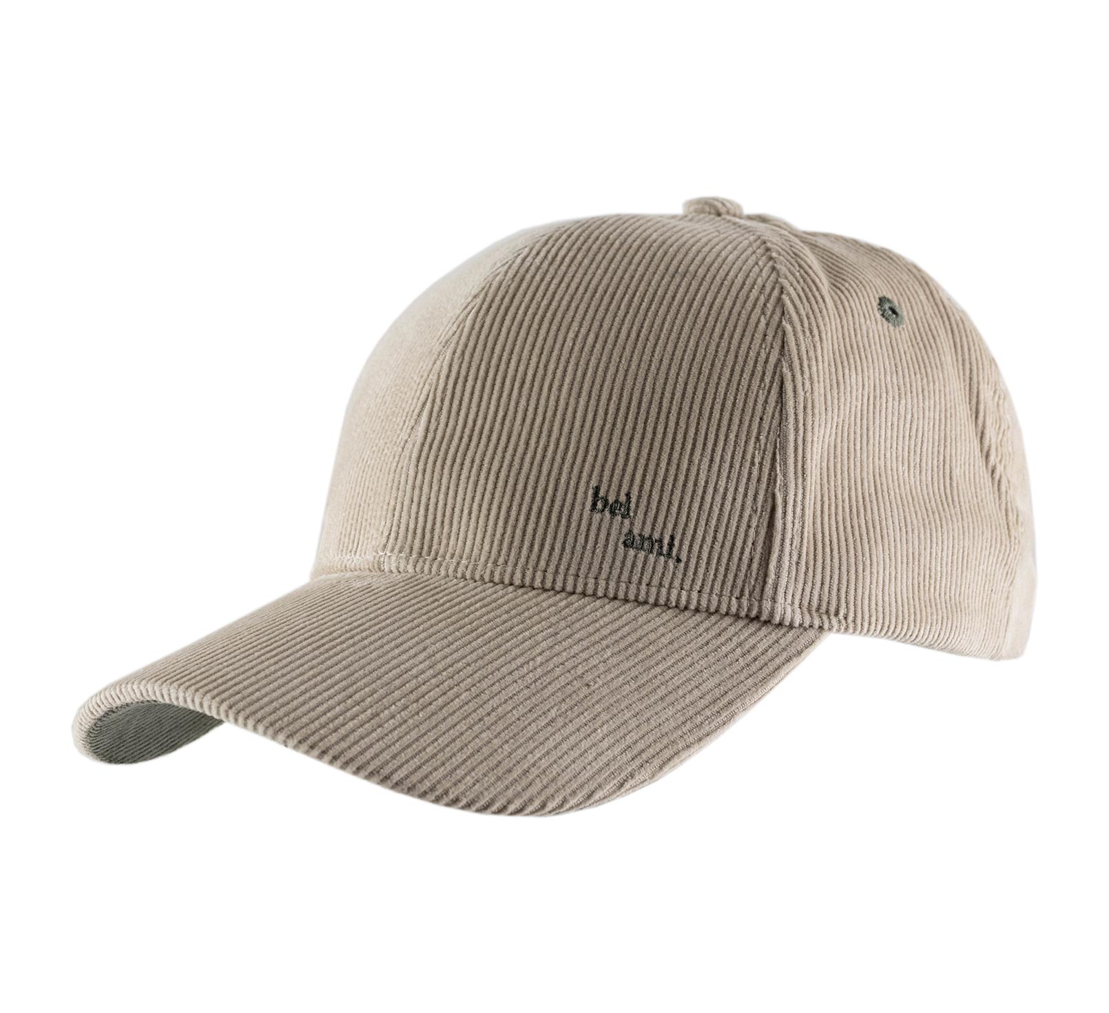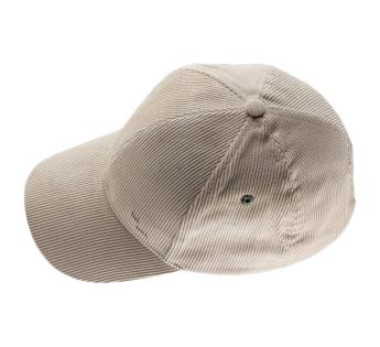 Baseball cap met 6 pans in dikke ribfluweel, met een brede nerf en soepele textuur. Een materiaal met een uitgesproken retro-geest, ideaal voor het tussenseizoen of de winter dankzij de zachte aanraking en natuurlijke warmte.
