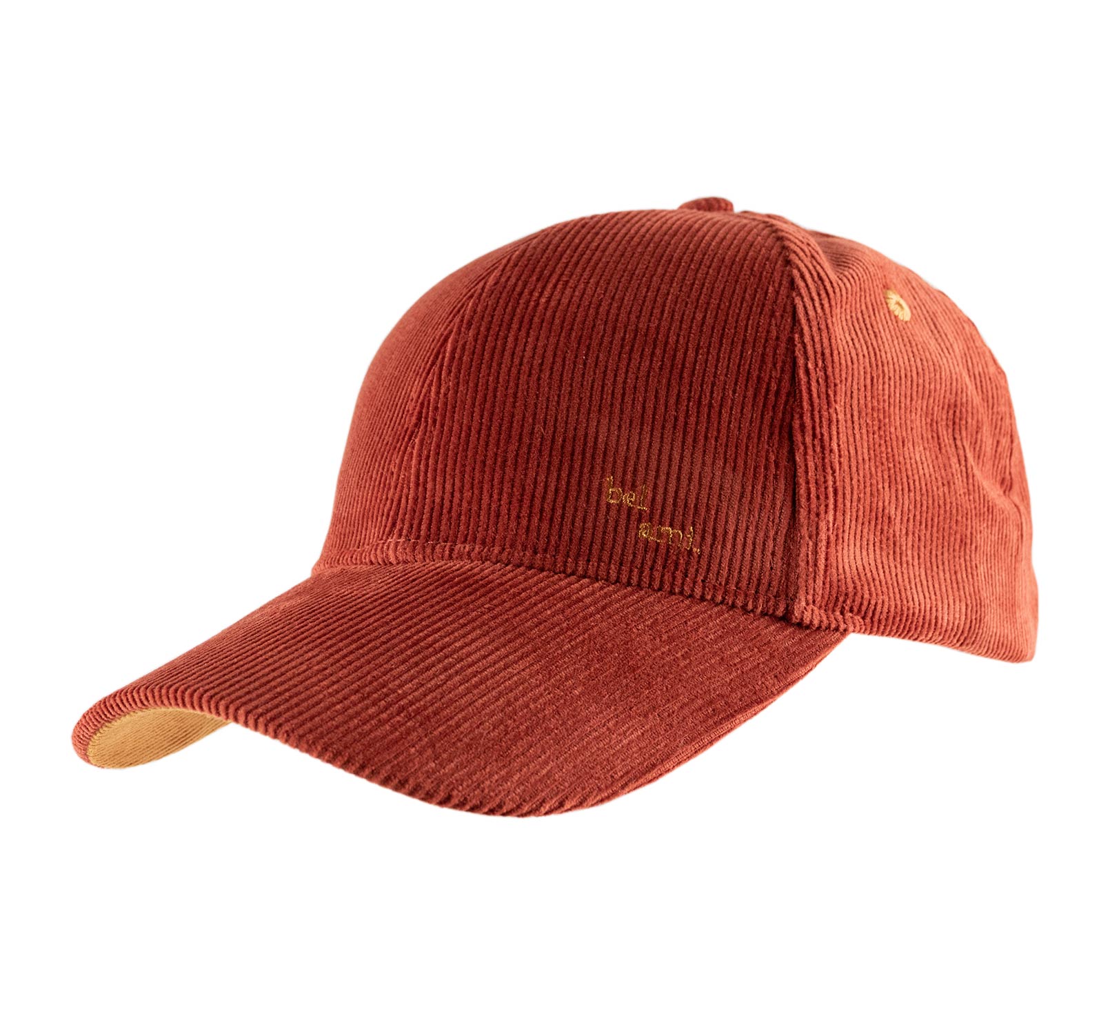 Baseball cap met 6 pans in dikke ribfluweel, met een brede nerf en soepele textuur. Een materiaal met een uitgesproken retro-geest, ideaal voor het tussenseizoen of de winter dankzij de zachte aanraking en natuurlijke warmte.