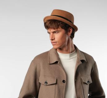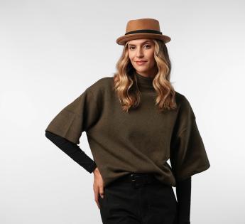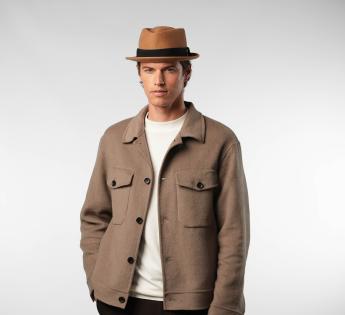 Gemaakt van wol vilt, biedt het structuur, comfort en perfecte stevigheid. Zijn typische platte kroon en rand opstaand vorm geven een moderne uitstraling, terwijl het toegankelijk en gemakkelijk te dragen blijft. Een hoed met een sterk karakter, ontworpen voor degenen die hun stijl willen benadrukken zonder te overdrijven.