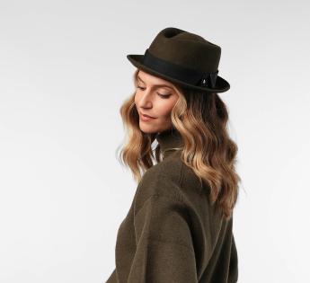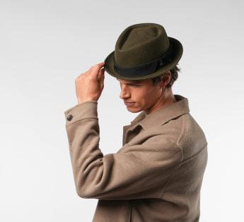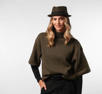 Gemaakt van wol vilt, biedt het structuur, comfort en perfecte stevigheid. Zijn typische platte kroon en rand opstaand vorm geven een moderne uitstraling, terwijl het toegankelijk en gemakkelijk te dragen blijft. Een hoed met een sterk karakter, ontworpen voor degenen die hun stijl willen benadrukken zonder te overdrijven.