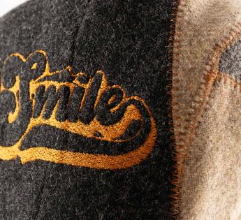 Een patchwork van materialen en stijl: deze Ivy flat cap van onbewerkt Shetland wol biedt een aansluitende en dynamische snit, versterkt door een spel van contrasterende panelen subtiel geaccentueerd door zichtbare stiksels. Aan de achterkant voegt een geborduurde 'Smile' een sterke grafische touch toe, op aanvraag vervaardigd in onze werkplaats in Lyon.