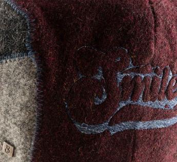 Een patchwork van materialen en stijl: deze Ivy flat cap van onbewerkt Shetland wol biedt een aansluitende en dynamische snit, versterkt door een spel van contrasterende panelen subtiel geaccentueerd door zichtbare stiksels. Aan de achterkant voegt een geborduurde 'Smile' een sterke grafische touch toe, op aanvraag vervaardigd in onze werkplaats in Lyon.