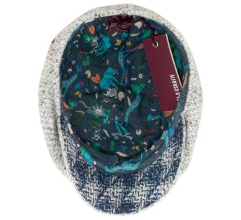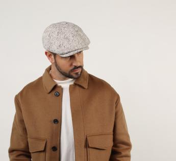 Snit licht loszittend voor een ballon cap van wollen tweed. De stof is gemêleerd met grijstinten en onthult een mooie, fijne, elegante en glanzende textuur. De kroon met 8 panels strekt zich uit tot een zichtbare, gebogen vizier voor een moderne en vintage uitstraling tegelijk. De ballon cap biedt een stijl die gemakkelijk te dragen is.