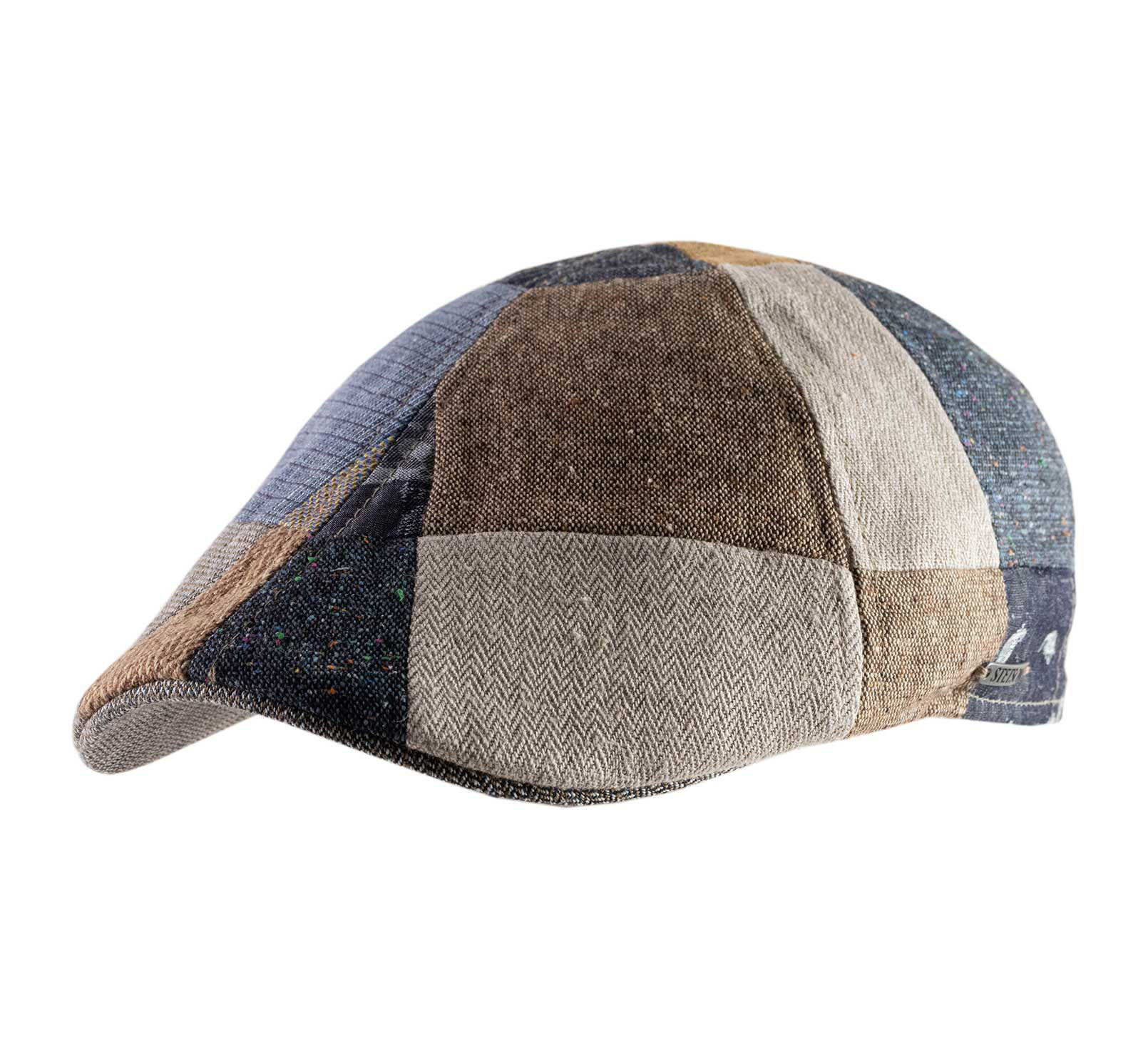 Casquette bec de canard in een patchwork van harmonieuze materialen. Het ontwerp zorgt voor een rijke samenstelling van details en nuances. Het is ideaal voor degenen die een unieke stijl zoeken en het vakmanschap van kwaliteit benadrukken.