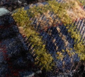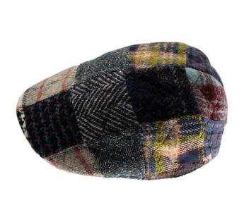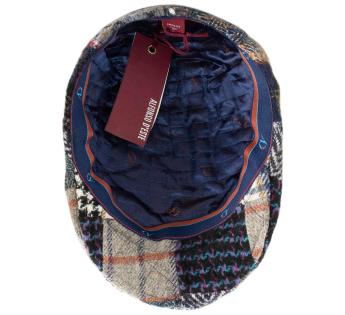 Spel van patronen en texturen op een achtergrond van warme wol. Een pet in patchworkmethode met verschillende soorten wol (krullend en tweed). Een pet die ons deze winter en zelfs al in het tussenseizoen zal verwennen, terwijl hij ons verwelkomt onder zijn comfortabele en zachte kroon. Voor zeer aangename casual-chic ervaringen.