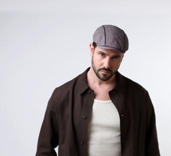 Platte pet gemaakt van een weefsel met een honingraat-effect om een dynamische uitstraling te creëren in combinatie met zijn snit. Het heeft een bies van kunstleer voor een retro-stijl die we met verschillende outfits kunnen combineren. Daarnaast maakt de textielmix het een geschikt accessoire voor dit seizoen.