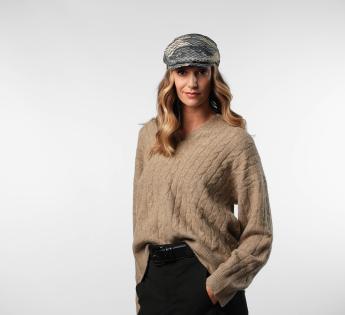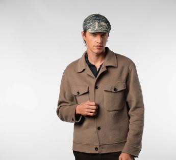 Tussen schaduw en licht betovert deze Ivy flat cap met zijn originele jacquardpatroon, dat geometrische vormen en camouflage-inspiratie combineert. Een zorgvuldig geweven stof die karakter aan het materiaal geeft, terwijl het een mooie soepelheid behoudt. De contrasterende tinten brengen een grafische en eigentijdse touch.