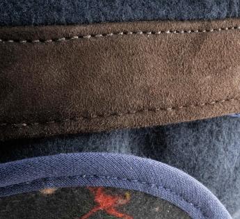 Pet met vizier in een warme en comfortabele wollen stof. De kroon is goed geïsoleerd tegen de kou dankzij de fleecevoering. De vizier is gemaakt van leer, dat achter de kroon wordt bevestigd met een andere leren band. Het ontwerp heeft oorkappen geïntegreerd om de bescherming van het hoofddeksel uit te breiden en het ontwerp verfijnder te maken.