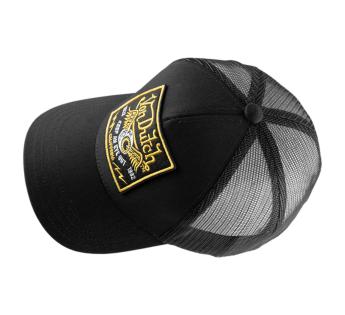 Het geborduurde embleem, het zwart-gouden contrast en de trucker-lijn roepen een ruiger, uitgesprokener Amerikaans gevoel op—bijna rock-’n-roll in uitstraling.