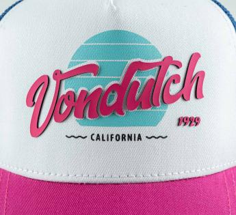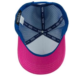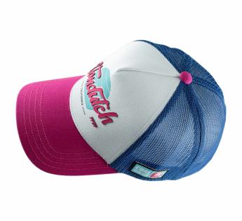 Op het eerste gezicht roept deze pet meteen een hele vintage sfeer op. Het uitgesproken contrast met zomerse popkleuren, het reliëflogo en de trucker-uitstraling geven hem een frisse, levendige en energieke look, in een retro-universum met Californische accenten.