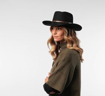 De slangenhuid-effect trimmen, geaccentueerd met een metalen Label, markeert een gedurfde stijl, balancerend tussen rustiek en verfijnd. Dit model is geïnspireerd door de legendes van het Westen, terwijl het een uitgesproken Franse elegantie behoudt. Een hoed met karakter, klaar om zijn weg te banen tussen ambachtelijke traditie en avontuurlijke geest.